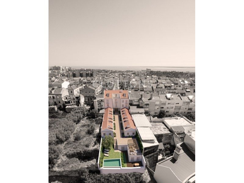 Building 7 exclusive apartments, 13 villas common garden and lounge area with an infinity pool with spectacular views over Lisbon's rooftops
