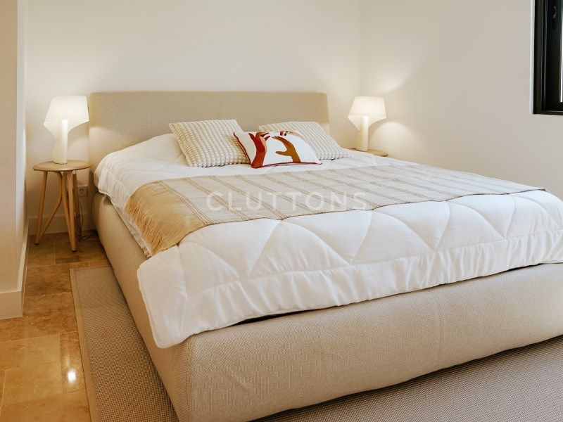 La villa sera construite avec des finitions haut de gamme, notamment : travertin grand format dans le salon, la cuisine et les chambres ; poignées de porte et finitions en aluminium brossé ; double vitrage ; porte-serviettes chauffants dans les salles de bains ; climatisation ; volets roulants électriques ; et système de vidéosurveillance.