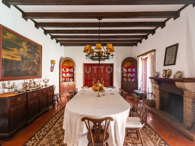 Zone résidentielle: - Maison principale (548 m² + 170 m² de grenier avec utilisation de la surface constructible) : Rez-de-chaussée avec 7 chambres, salons avec cheminée, cuisine traditionnelle, chapelle privée et patio intérieur avec trottoir portugais et lac. Le grenier est partiellement utilisé avec plusieurs chambres et salles de bains. -Annexe du logement (228 m²) : Comprend un appartement de 3 chambres, une buanderie, un salon avec cheminée, des débarras et un garage.